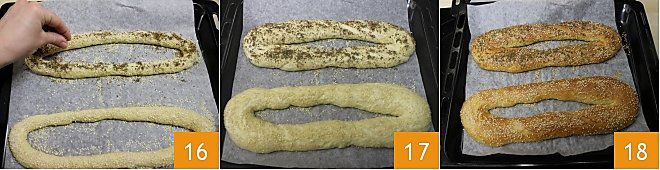 Si tienes disponible Za'tar, puedes espolvorear con él la superficie de los bagels 16. Deja que leven aproximadamente una hora más 17 y luego hornea los bagels en un horno estático precalentado a 200°C durante 15 minutos (si es ventilado a 180°C durante 12 minutos). Cuando los bagels de Jerusalén estén dorados, sácalos del horno, deja que se enfríen un poco y ¡pruébalos!