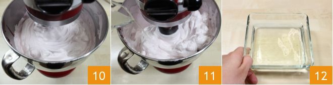 continuando batiendo hasta que se enfríe completamente 10, para más detalles consulta la ficha de la merengue italiano. Por último, añade el jugo de medio limón 11 y transfiere la mezcla a un bol. Ahora, pon a remojar la gelatina en agua fría durante 10 minutos 12, pasado este tiempo escúrrela