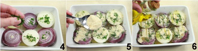 Unta bien con aceite una fuente para horno y coloca las cebollas con la parte cortada hacia arriba, sala y pimienta, cubre con abundante perejil picado 4 y espolvorea con pan rallado 5. Termina rociando con aceite de oliva virgen extra 6. Hornea a 180°C durante 60/75 minutos hasta que las cebollas estén bien cocidas, tiernas y ligeramente doradas (verifica la cocción de las cebollas pinchándolas con un palillo de madera).