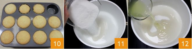 Una vez cocidos los cupcakes, desmolda y deja enfriar 10. Mientras tanto, continúa con la preparación de la crema de mantequilla (puedes consultar el procedimiento de la crema de mantequilla también aquí). En una sartén amplia vierte el agua, luego añade el azúcar 11. Ahora vierte también el limoncello 12 y mezcla.