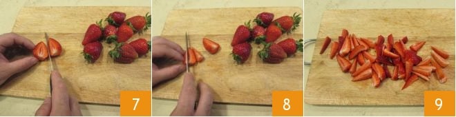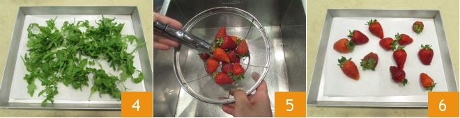 lavándola y secándola cuidadosamente 4. Lava también las fresas 5 con agua fría y sécalas 6,