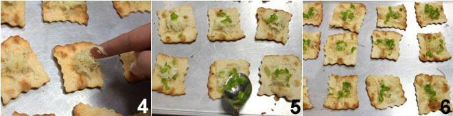 Colocad las 12 hojas de hojaldre en una bandeja y rellenadlas una por una con un montoncito de queso 4 y 3-4 trozos de chile 5. Pasad los hojaldres rellenos por el horno caliente a 180 grados solo un minuto, el tiempo justo para que el queso se derrita 6. ¡Servid los hojaldres tex-mex inmediatamente!