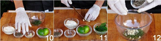 EL LABNEH Para preparar el labneh 10, se reduce el ajo a puré 11 y se une a la menta fresca picada, a la sal y a la pimienta 12, al yogur 13,