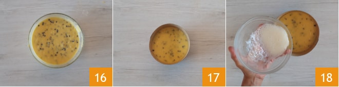 hasta que estén bien amalgamados 16. Vierte la mezcla en el molde para panettone de 500 g o en un molde alto de 20 cm 17. Vierte el glaseado sobre la superficie del panettone 18;