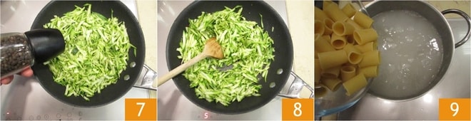 Sala y pimienta 7 y deja cocinar durante 3-4 minutos 8. Ahora vierte la pasta en el agua que habrá alcanzado el punto de ebullición 9.