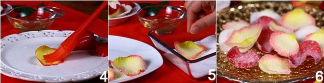 La preparación, que se realiza untando los pétalos con clara de huevo y pasándolos posteriormente por azúcar granulada, es muy fácil y rápida y garantiza un resultado sorprendente.