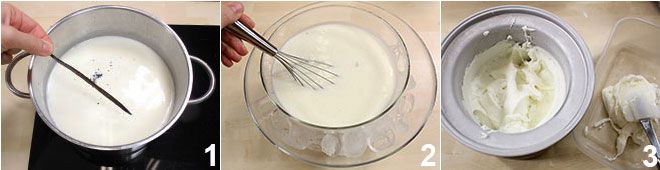 Para preparar el helado pingüino, primero prepara el helado de nata: vierte la leche en un cazo, añade el azúcar, la nata y la vaina de vainilla abierta 1 luego mezcla y lleva la mezcla a no más de 85°. Al llegar a la temperatura, coloca inmediatamente el cazo dentro de un recipiente con agua y hielo para bajar rápidamente la temperatura de la mezcla 2 y una vez frío, viértelo en una heladera y déjalo mantecar durante al menos 30 minutos, hasta que la mezcla esté densa y cremosa 3. Para ver la ficha del helado de nata Helado de nata