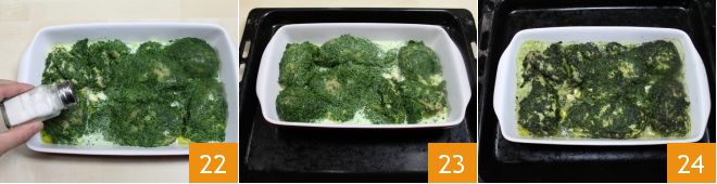 Sala y pimienta al gusto 22 y hornea en horno estático ya caliente a 180° durante 35-40 minutos 23, si usas el horno ventilado, cuece a 160° durante 25/30 minutos. Cuando el pollo esté ligeramente dorado en la superficie y el jugo se haya espesado un poco 24, tu pollo al verde está listo para servirse bien caliente, acompañado de una guarnición de patatas!
