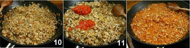 Añadid la pulpa de tomate 11 y cocinad por 10 minutos más, ajustando de sal y pimienta 12. Coced la pasta elegida y condimentadla con el ragú de conejo.