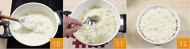 Al final de la preparación, el arroz con leche debe tener una consistencia bastante cremosa 10. Cuando el arroz esté cocido, elimina las cáscaras de limón y la vaina de vainilla 11. En este punto, transfiere el arroz con leche a pequeños cuencos individuales 12.