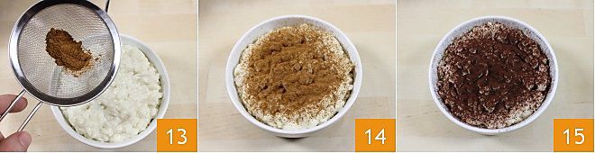 y con un colador 13 espolvorea cada cuenco de arroz con leche con canela en polvo 14 o con cacao 15 como prefieras y de la misma forma puedes decidir si disfrutar el arroz con leche recién hecho, templado o incluso frío.