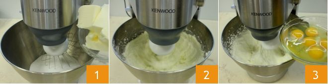 Para preparar la rosquilla de café, comenzad vertiendo en el bol de una batidora el azúcar granulada, añadir la mantequilla en trozos a temperatura ambiente 1. Accionad las varillas a una velocidad media-alta para montar los ingredientes hasta obtener una mezcla clara y espumosa 2. Luego agregad los huevos uno a uno continuando haciendo funcionar las varillas 3.