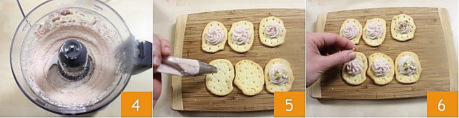 luego triturad todo hasta obtener una mezcla cremosa y homogénea 4. Pasad ahora la mousse a una manga pastelera con boquilla estrellada: estáis listos para componer vuestros aperitivos. En cada tosta, poned un copete de crema 5, luego adornad con una pizca de pistachos triturados y pimienta negra molida 6. ¡Voilà! Las tostas con crema de mortadela y pistachos están listas, ¡muy sencillas de realizar y de gran efecto!