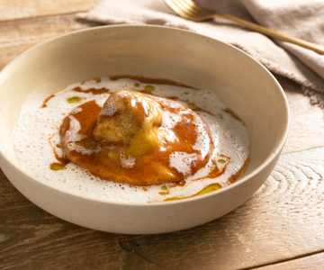 Ravioli rellenos de costillas de ternera con espuma de limón El ravioli relleno de costillas de ternera con espuma de limón es un refinado primer plato de pasta fresca rellena con una carne tierna y jugosa. 4 h 40 min LEER RECETA