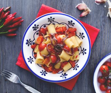 Mezze maniche con tomatitos y anchoas Las mezze maniche con tomatitos y anchoas son un primer plato de rápida preparación, adecuado cuando solo tienes unos pocos minutos para cocinar! 4.2 Muy fácil 15 min Kcal 482 LEER RECETA