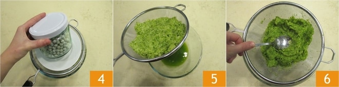 Coloca un platillo sobre los calabacines, y sobre él pon un peso 4. Deja los calabacines así cubiertos para que escurran al menos durante una hora: de esta manera perderán mucha agua 5. Presiónalos un poco más con una cuchara 6.