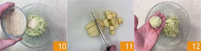 Añade pan rallado solo si la mezcla queda demasiado blanda 10. Deja la masa a un lado y corta en pequeños cubitos la fontina 11. Ahora forma las albóndigas tomando una parte de la mezcla 12.
