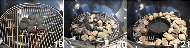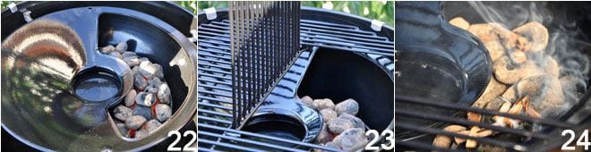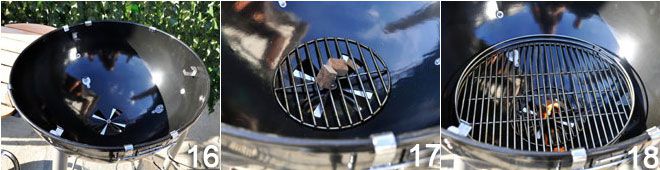 Preparar la configuración de la parrilla para las cocciones indirectas como se muestra en estos pasos: (16-17-18)