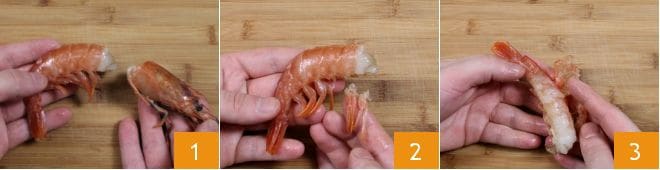 Para preparar los arancini de arroz venere y pescado, comienza limpiando el pescado (las cabezas y los caparazones te sirven para el Caldo de pescado). Para la Cómo limpiar los gambones, separa con cuidado la cabeza, las patas y quita el caparazón: usa estas partes para preparar el caldo de pescado.