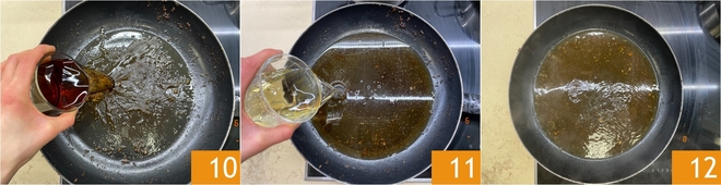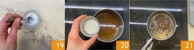 Mezcla bien para disolver la maicena 19, añádela al fondo de cocción 20 y cocina por unos minutos más hasta que alcance el hervor 21.