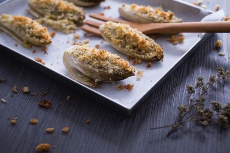 Vieiras gratinadas con berenjenas