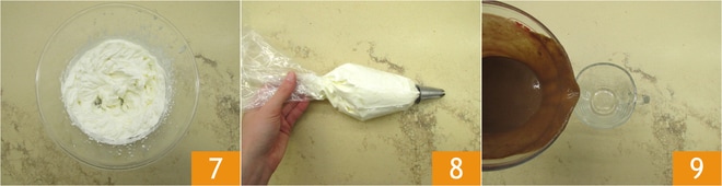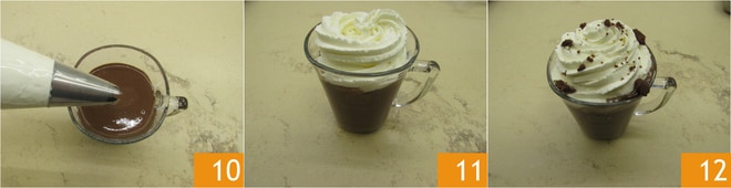 Cuando la nata esté bien firme 7, transferidla a una manga pastelera con boquilla estriada de 12 mm 8. Verted la bizcochada en la taza 9.