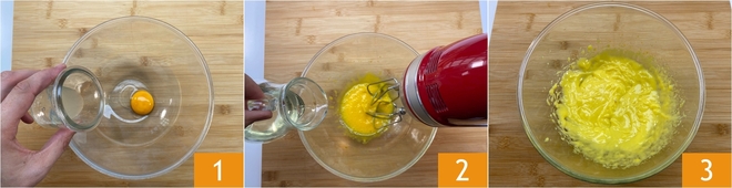 Para preparar el bocadillo con atún y cebolla, aseguraos de haber comprado pescado fresco previamente congelado. Comenzad con la mayonesa. Verted la yema en un bol, junto al zumo de medio limón 1. Empezad a trabajar con las varillas eléctricas y poco a poco verted el aceite de semillas en hilo, sin detener nunca las varillas. Continuad trabajando hasta terminar el aceite y obtener una consistencia firme 3.