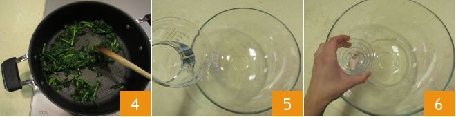 hasta que se hayan marchitado 4, luego déjelos enfriar completamente. En este punto, vierta en un bol el agua tibia 4 y la levadura 5.