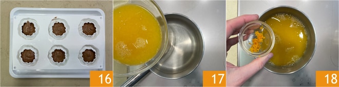 Poned en el congelador durante 6 horas 16. Preparad la salsa de naranja: en un cazo verted el zumo de naranja 17 y la cáscara 18 y calentad.