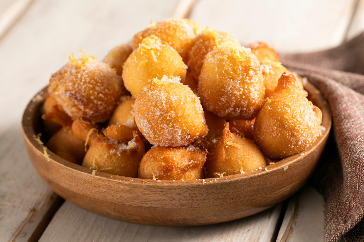 En lugar de las clásicas Castagnole, hoy hacemos los buñuelos suaves de limón: suaves y ligeros, con una masa simple y rápida que se prepara en pocos minutos. El secreto de su éxito está todo en el aroma cítrico: zumo y cáscara de limón hacen que estos buñuelos sean irresistibles, mientras que la cobertura de azúcar granulado aromatizado con limón los convierte en una pequeña obra maestra de bondad.