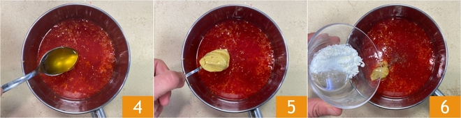 Añade la miel 4, la mostaza 5 y la maicena 6.