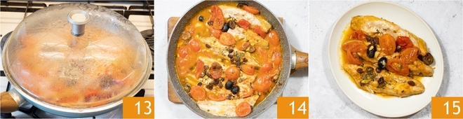 Cubre con la tapa y cocina durante 10 minutos a fuego medio-bajo 13. Finalmente, quita la tapa y deja que la salsa se reduzca durante 5 minutos a fuego alto 14. Sirve inmediatamente tu caballa a la sartén 15.