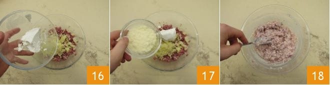 añadid la ricotta 16, el Parmigiano 17 y la pimienta. Mezclad todo hasta homogeneizar los ingredientes 18 y guardad en el frigorífico.