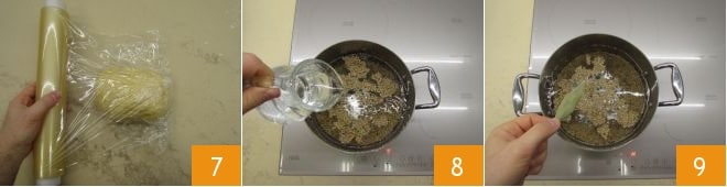 Envuelved la pasta al huevo en film y dejadla 7 reposar a temperatura ambiente. Mientras tanto, ocupaos de cocer también las lentejas: enjuagarlas y trasladadlas a una cacerola. Cubridlas con agua 8 añadid el laurel 9 y dejadlas cocer durante unos 30 minutos.