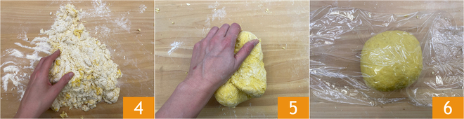 Cuando la mezcla tome consistencia continúen trabajando a mano 4 hasta que la masa se vuelva compacta 5. Envuélvanla en film transparente y dejen reposar por aproximadamente media hora en un lugar fresco 6.