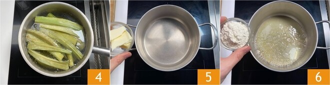 Hierve los cardos en agua hirviendo durante 25 minutos 4. Mientras tanto, prepara la bechamel: derrite la mantequilla en un cazo 5, luego añade la harina 6.