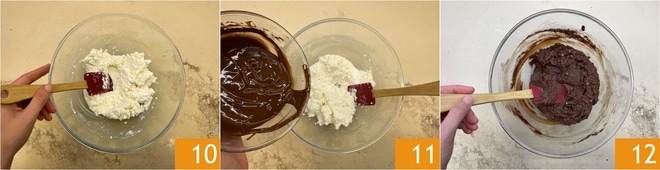 Mezcla con una espátula para incorporarlos 10. Funde el chocolate como se hizo anteriormente y agrégalo a la mezcla 11. Mezcla hasta que quede homogéneo 12.