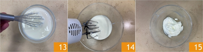 Mezcla hasta obtener una crema lisa, luego reserva en la nevera. Ahora monta la nata con batidoras eléctricas 14 15.