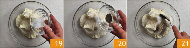 Ajustad de sal 19 y de pimienta 20. Mezclad hasta obtener una mezcla homogénea 21.