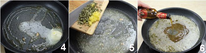 Reserva las chuletas y en la misma sartén añade la mantequilla 4, el picado de hierbas aromáticas 5 y la cerveza 6. Deja que espese durante un minuto, mezclando bien, y luego apaga el fuego. Coloca las chuletas en los platos y riega cada una con la salsa de cerveza. Sírvelas aún humeantes.