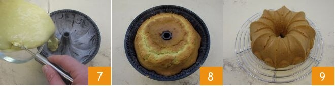 Debes obtener una mezcla homogénea y fluida; enmantequilla y enharina un molde de bizcocho bastante profundo de 24 cm de diámetro. Vierte dentro la mezcla ayudándote con una espátula 7: distribúyela de manera uniforme siempre con la ayuda de la espátula y evita golpear el molde para nivelar la mezcla para no detener el proceso de levadura. Cocina el bizcocho con aceite en horno estático precalentado a 170° durante unos 50 minutos (si es horno ventilado a 150° durante unos 40 minutos); si tiende a oscurecerse demasiado, puedes cubrirlo con un papel de horno después de los primeros 30 minutos de cocción. Una vez cocido, haz la prueba del palillo y déjalo 5 minutos en el horno apagado antes de desmoldarlo 8. Déjalo enfriar un poco, luego desmóldalo y déjalo enfriar completamente sobre una rejilla 9. Antes de servir tu bizcocho con aceite de oliva, puedes espolvorearlo con azúcar glas o decorarlo con un Glaseado de agua.