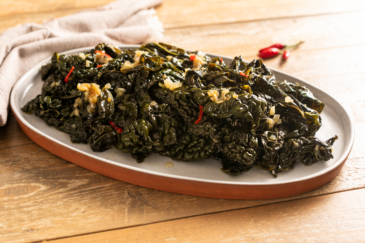 La col rizada en sartén es un acompañamiento sencillo y ligero, ideal para realzar el sabor y las propiedades nutricionales de este vegetal de hojas oscuras, típico de la temporada fría. A menudo lo disfrutamos en los platos de nuestra tradición, como la típica Ribollita, pero cocinado en esta versión esencial se convierte en un excelente acompañamiento tanto para segundos de carne como de pescado, además de una base versátil para enriquecer bowls y ensaladas.