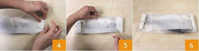 luego sella todo plegando los lados cortos hacia adentro, como si estuvieras cerrando un paquete de regalo 4. Fija el paquete atando la parte más larga con hilo de cocina bien apretado 5 y termina con un lazo 6 de esta manera el papillote tendrá un cierre perfecto!