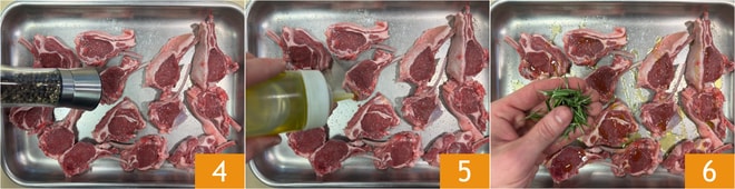 Condimenta con sal, pimienta 4, aceite 5 y romero 6.