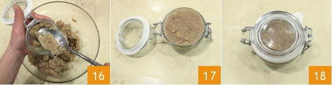 En este punto, transfiere la crema de castañas a los tarros con una cuchara (16-17), tu crema de castañas está lista 18.