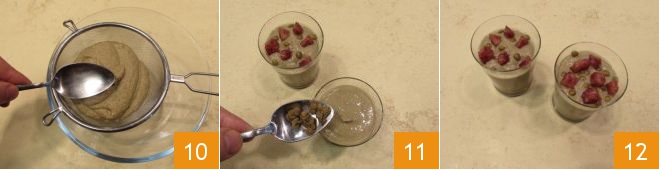 Cuando hayáis obtenido una mezcla cremosa, pasadla por un colador para que la crema quede más fluida 10. Repartid la crema en vasitos o terrinas individuales y decoradlas con el cotechino y las lentejas cocidas que habíais reservado 11. ¡Y ya está lista vuestra crema de lentejas con cotechino crujiente 12!