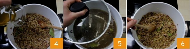 Regad con el Caldo de verduras 4, reservando aproximadamente 80 g aparte. Cubrid la olla con una tapa y dejad cocer las lentejas a fuego lento durante unos 50 minutos 5. Removedlas a menudo para comprobar que no se sequen demasiado 6.