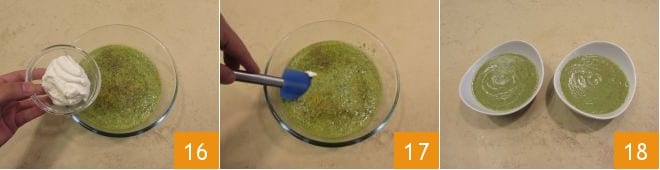 Añadid el yogur 16. Mezclad los ingredientes 17 y ahora vuestra crema de pepinos y yogur está lista para ser disfrutada 18!