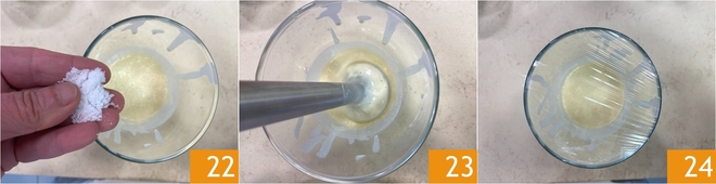 Agrega una pizca de sal 22, licúa nuevamente 23 y cubre con film. Deja reposar durante unos diez minutos 24.