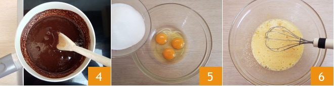 Retirad del fuego y dejad enfriar durante 5-6 minutos 4. En un bol, verted los huevos y el azúcar 5 y batidlos usando un batidor de mano 6.